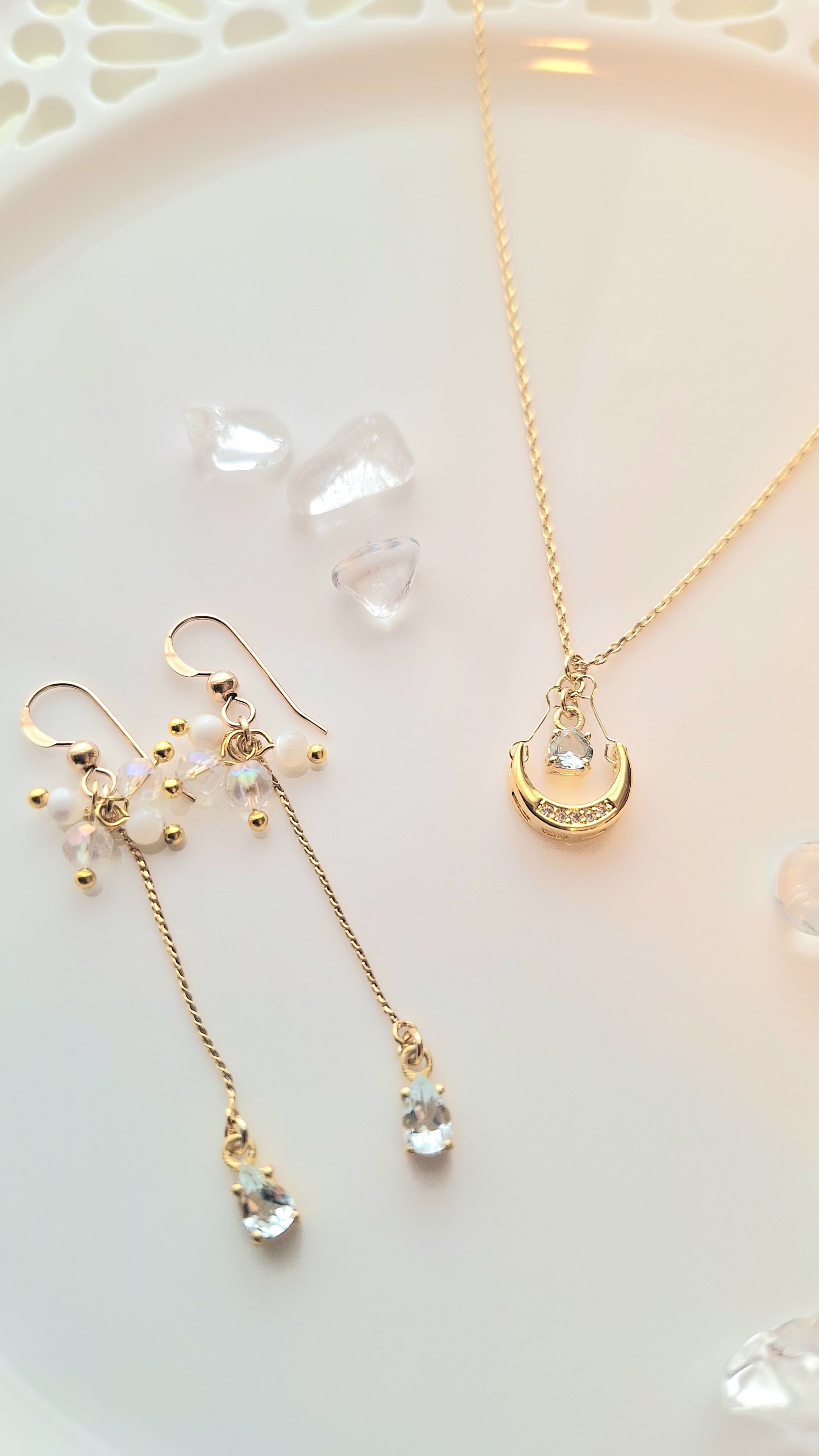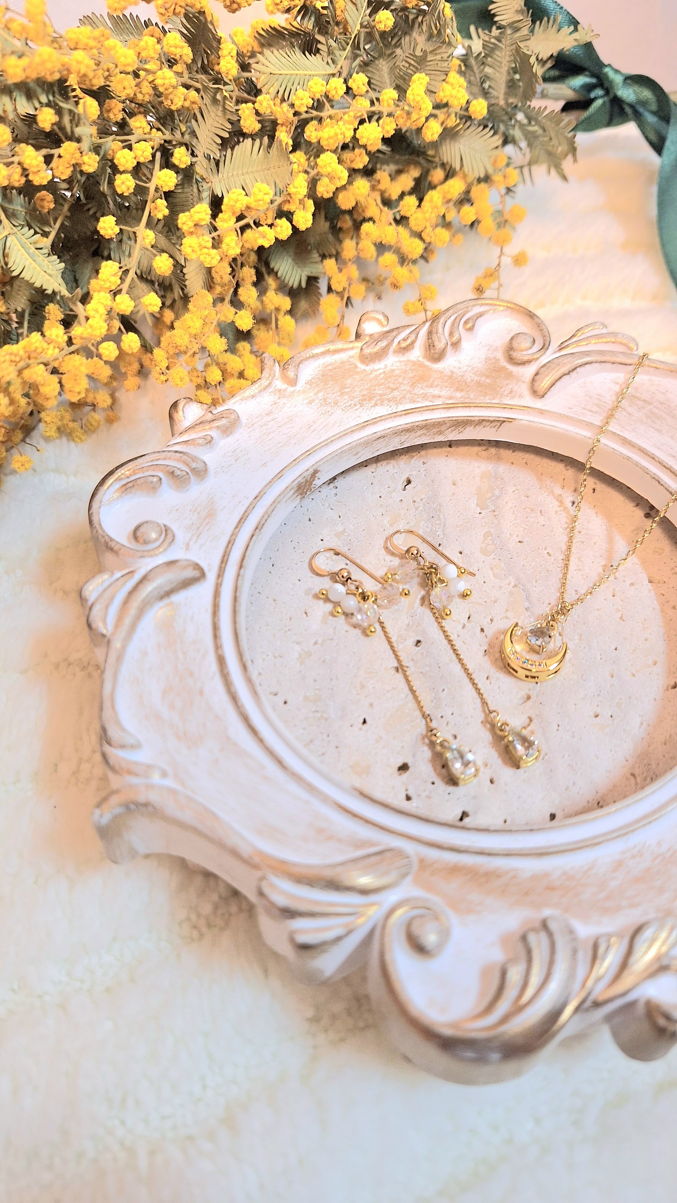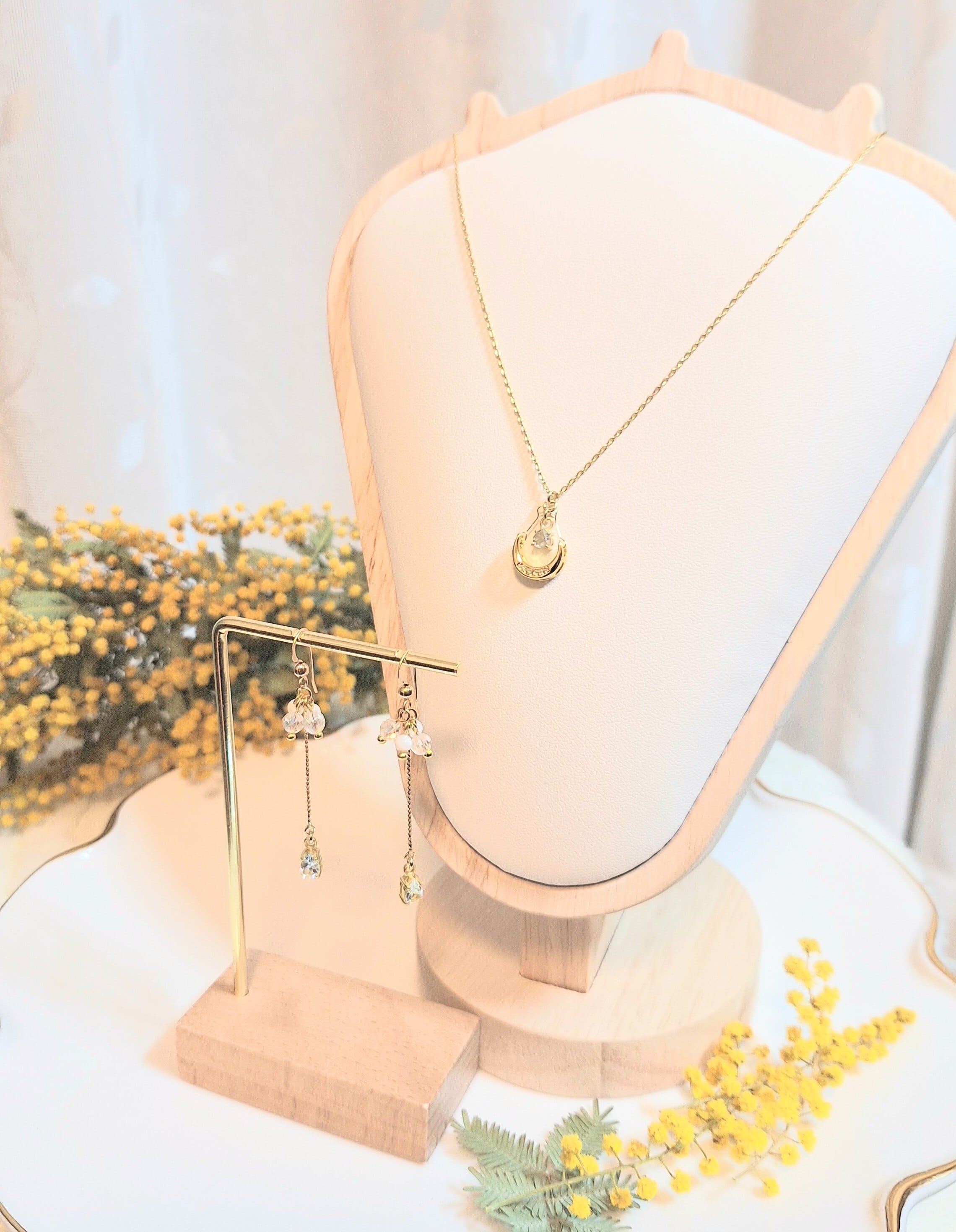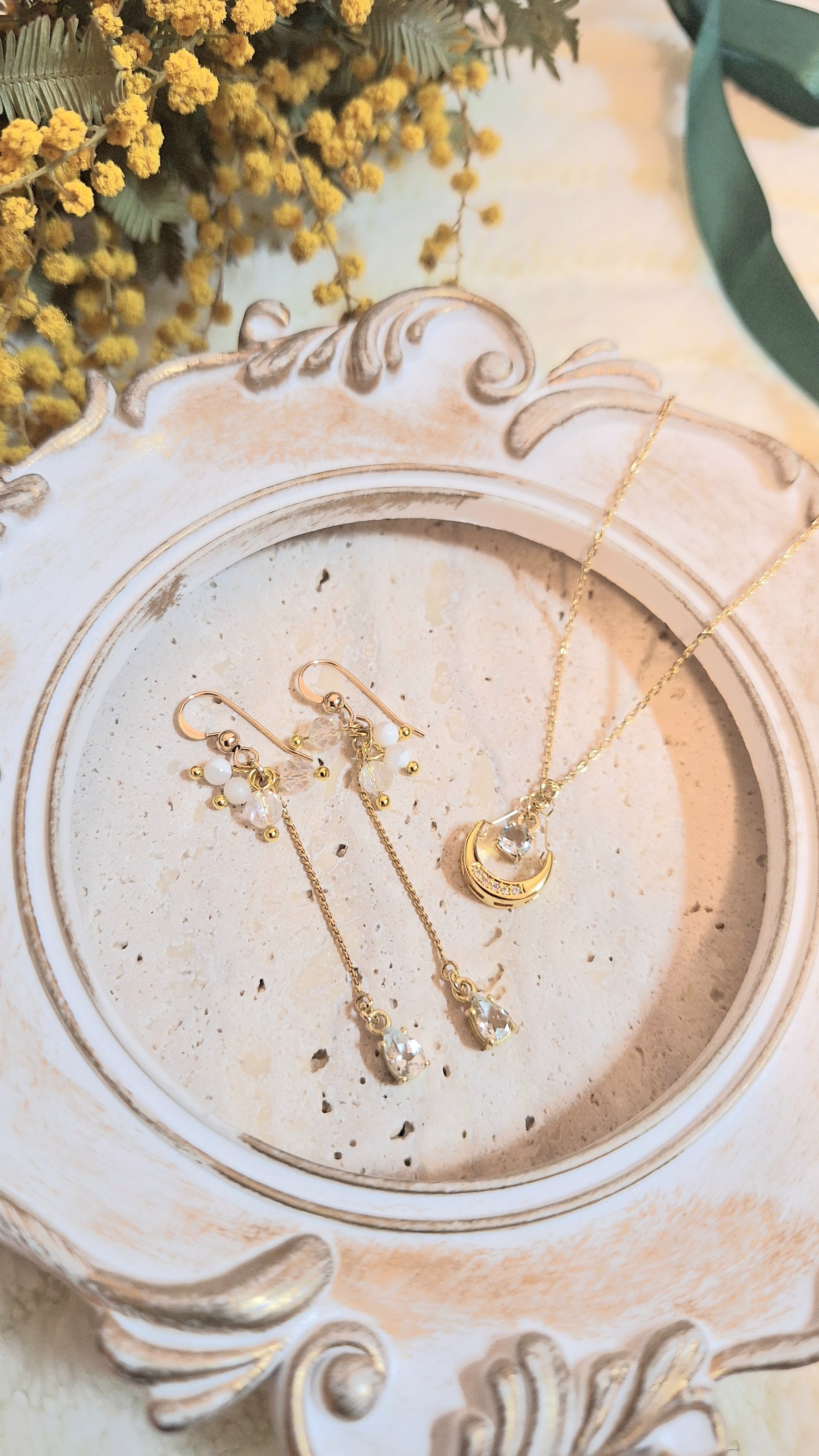 【月と海の癒しの幸せお守りネックレス&ピアス】のセット ミモザのお守りノベルティ付き♡