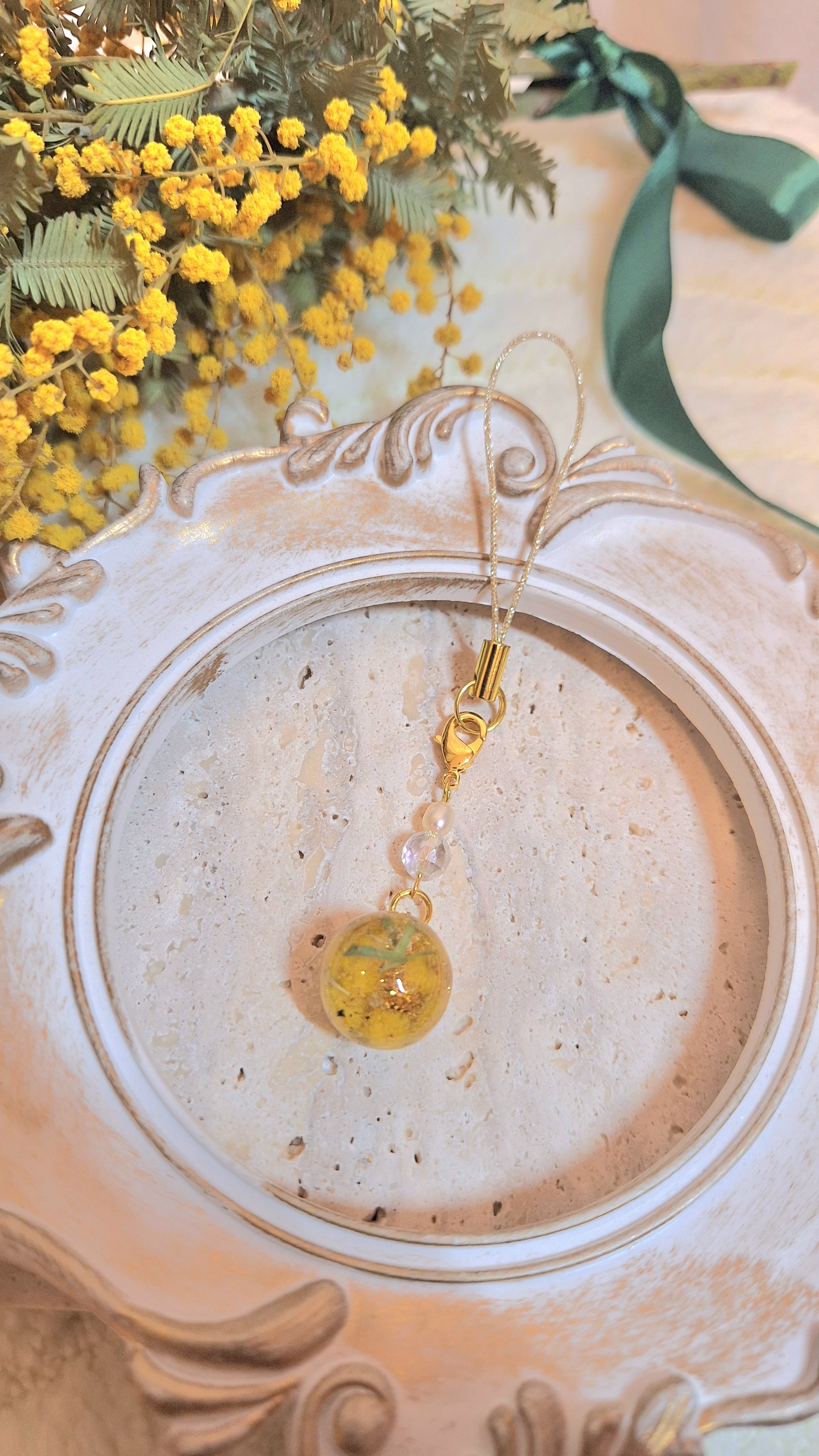 ミモザのレジンストラップも一緒にお届け致します♡